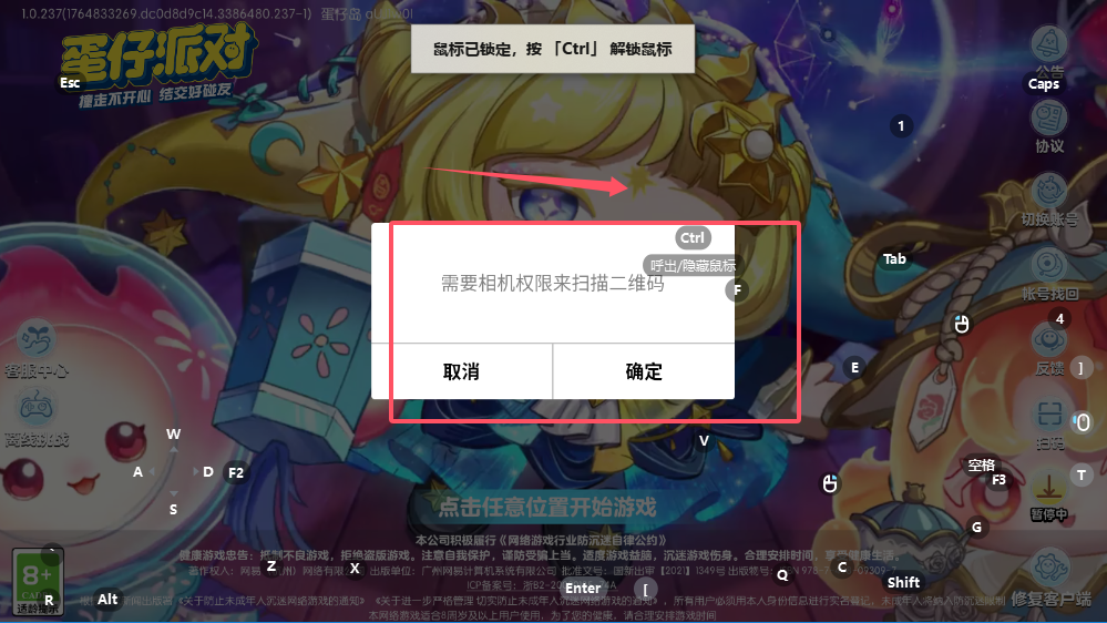 4、登录时如果发现鼠标被锁定无法点击,记得按键盘Ctrl键解锁,如果扫码不成功,还可以尝试其他登录方式,比如查看是否有应用宝登录、账号密码登录等其他入口。