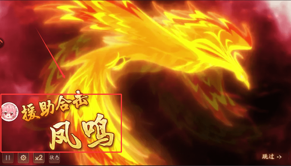 2、你可以点击“跳过”快速结束动画,而“援助合击”这类强力技能需要合理使用,它们通常在界面上方有独立按钮。