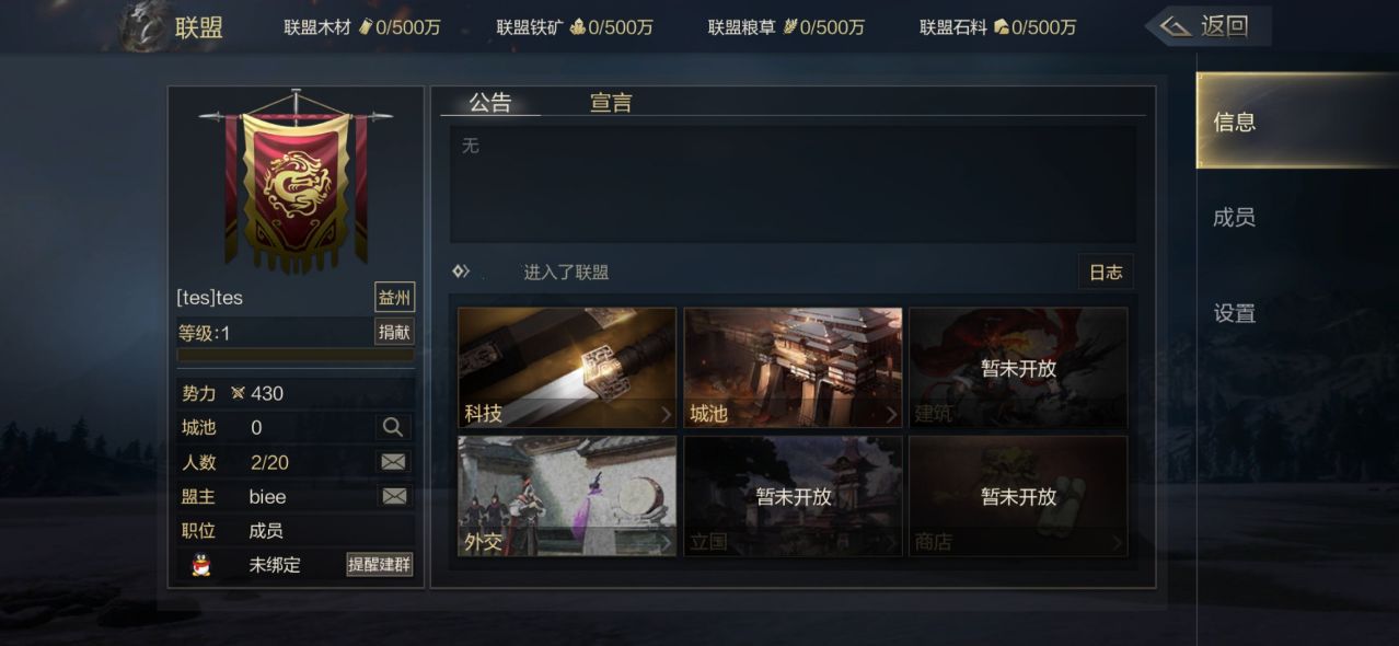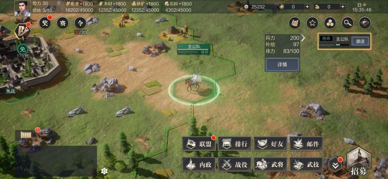 完成新手引导和任务后,就是发展和扩张,趁着新手保护期多占地,多积累资源,一边熟悉游戏玩法一边寻找加入合适的同盟。