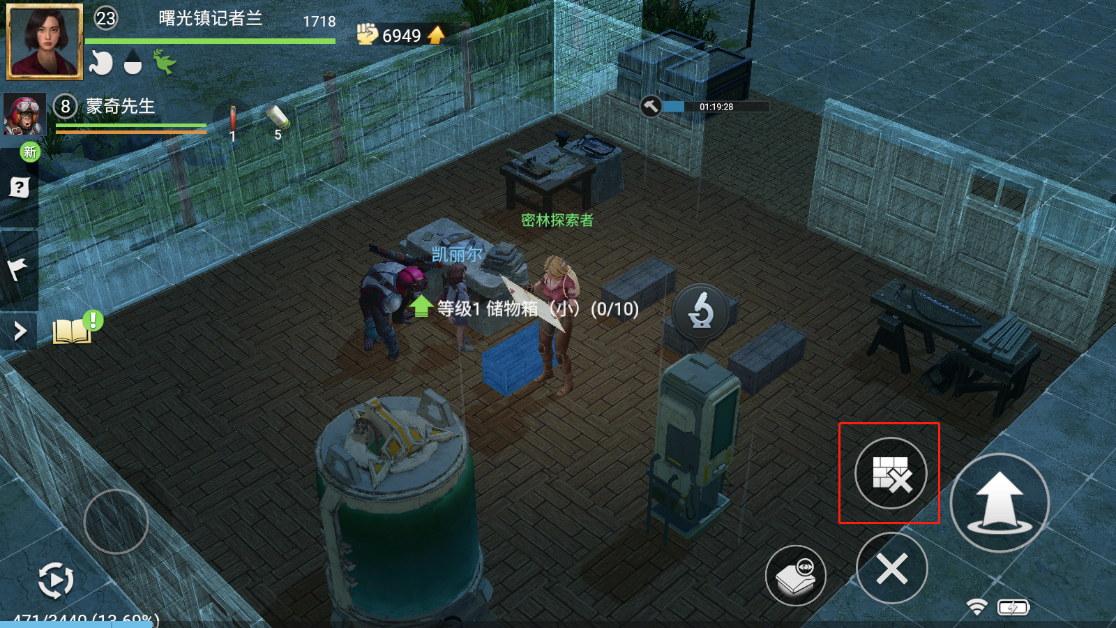 在清理干净储物箱(小)后,我们可以选择按住右下的按钮,快速进入营地设施调整模式。