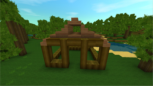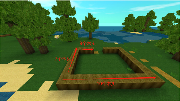 收集到大量木头后,直接用木头搭建一个房子的框架。