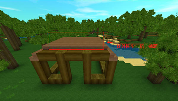 继续往上错开叠加一层木质楼梯,注意摆放的方向。