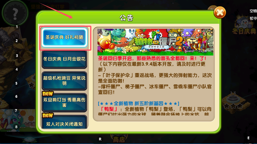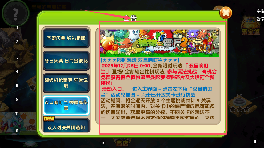 4、活动期间还需留意,游戏在3.9.4双旦版本更新后,存在“超级机枪豌豆”植物标签显示错误及“电击钩爪”属性加成异常等问题,官方已发布说明并表示将在后续版本中修复。