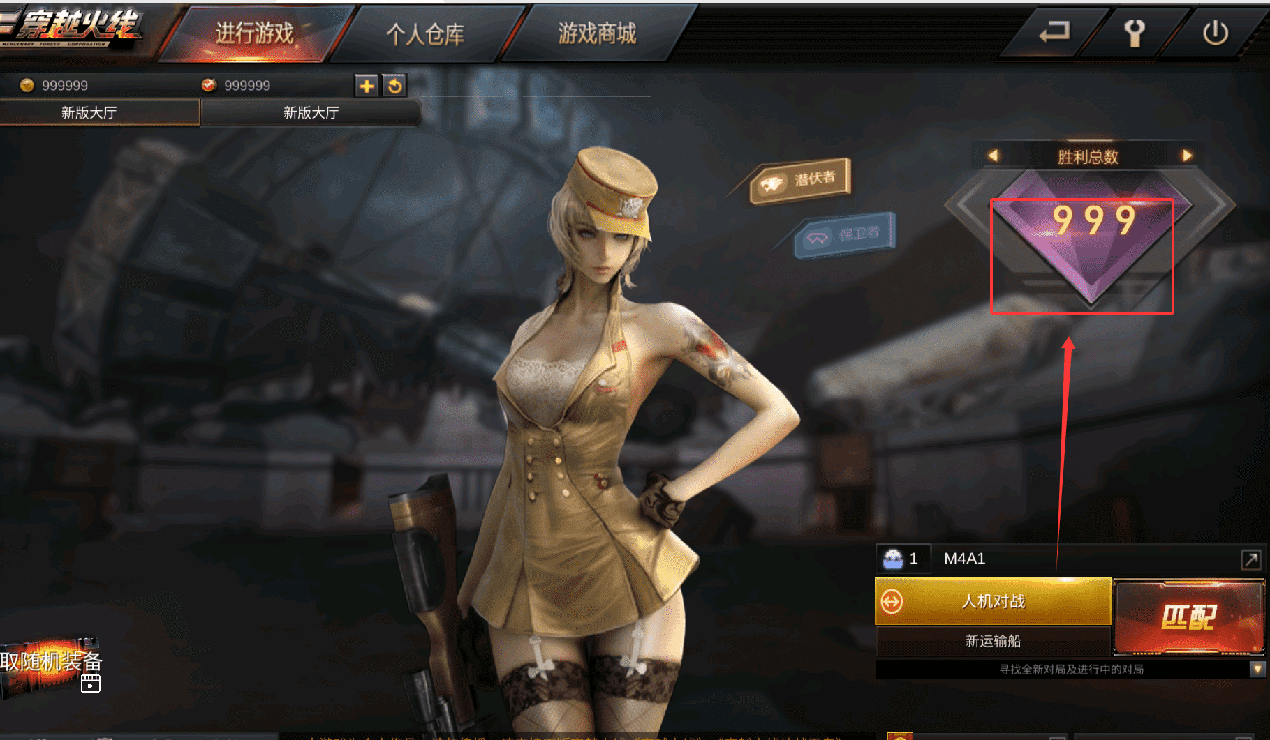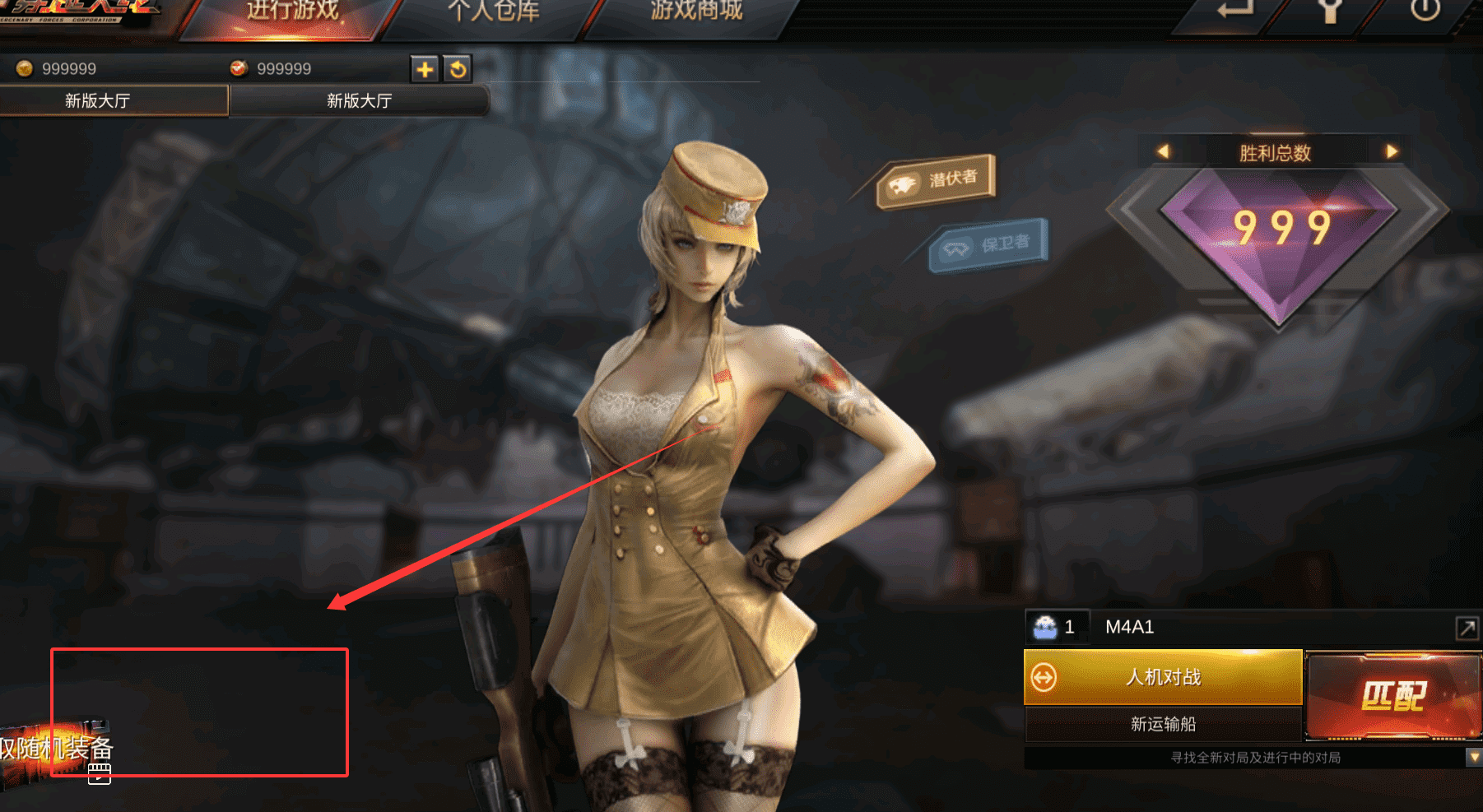 1、进入游戏后,你首先会看到新版大厅界面,左上角显示你的游戏昵称和等级,比如“999999”。