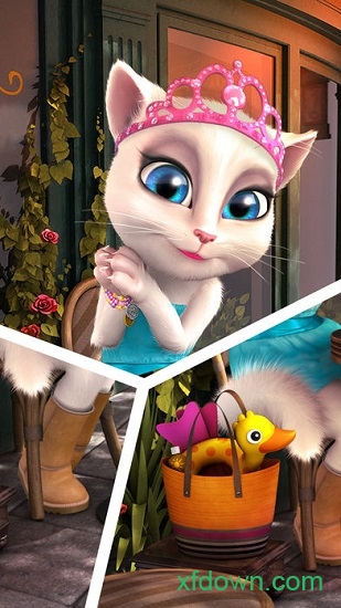 3、内置多元化的装扮与礼物系统,拥有大量时装、饰品及化妆品供玩家自由搭配。通过点击衣架按钮即可为安吉拉更换造型,打造独一无二的时尚萌宠形象。