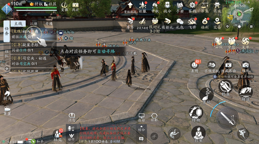 11、做缉拿的时候带上追级的玩家或者好友度高于100分的好友、金兰、同帮派成员,可获得社交礼盒,开启后概率获得6000碎银、砭石、心法,每周最多可获得20个社交礼盒;