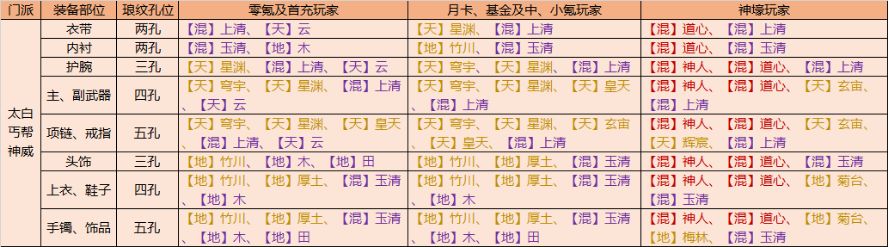在游戏前期,仍旧以第二阶段玩家的琅纹配置为主。