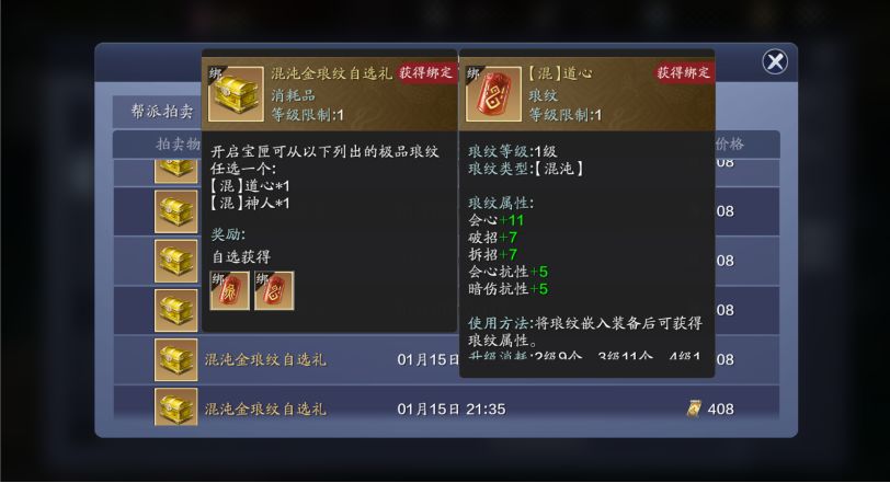 【混】道心和【混】神人如今有了拍卖产出后,在一定程度上也加速了全身【混】道心、【混】神人琅纹的进度。