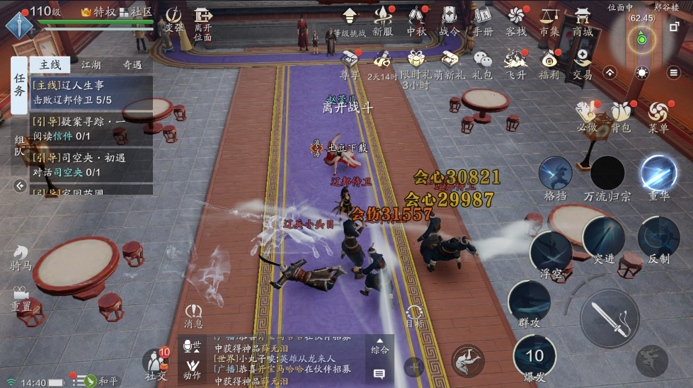 2、论剑先手最强职业,跑图专业户,自身设定导致很难接控打整套连招,略吃功力,功力不够的话纯刮痧,功力到位两套秒人。