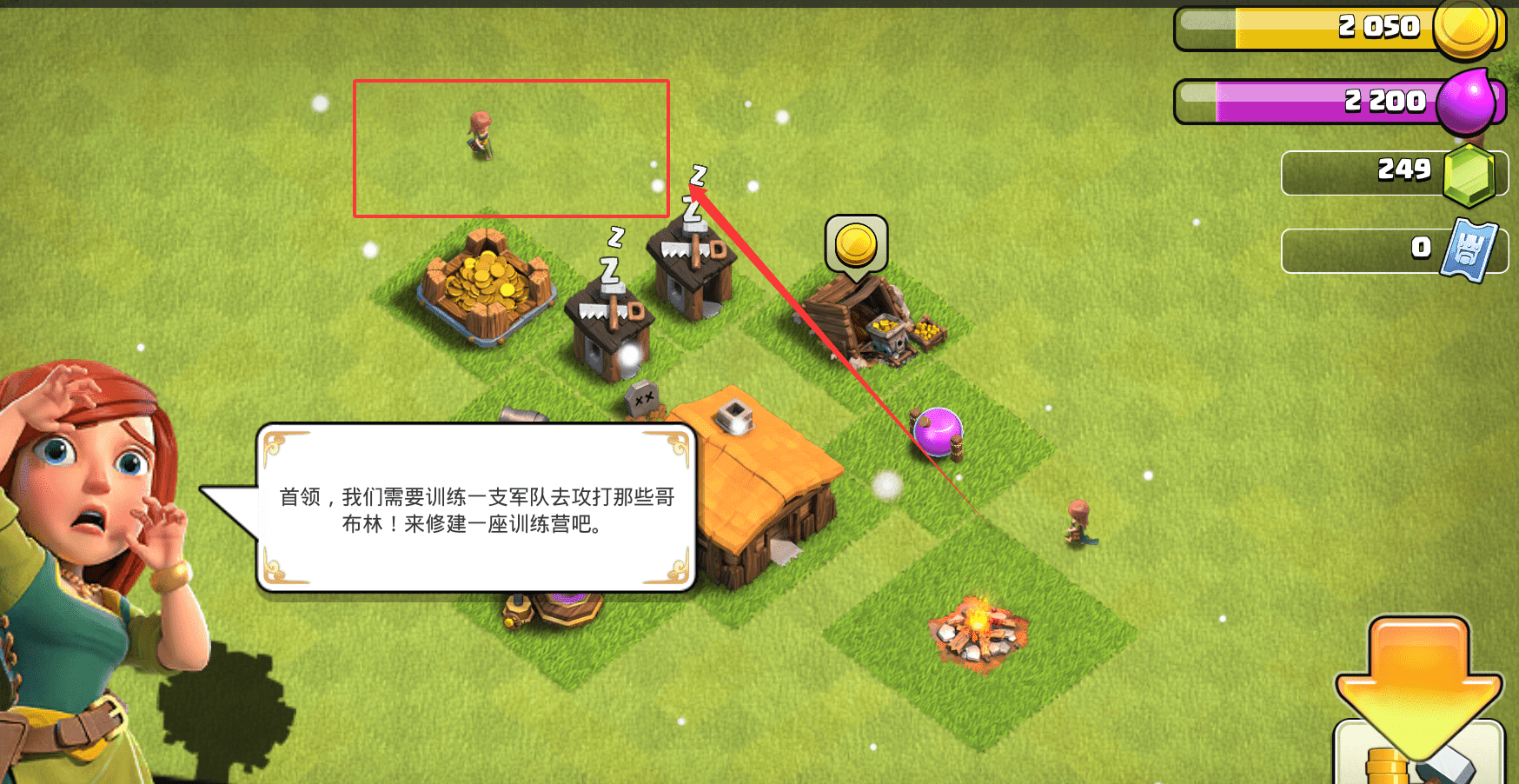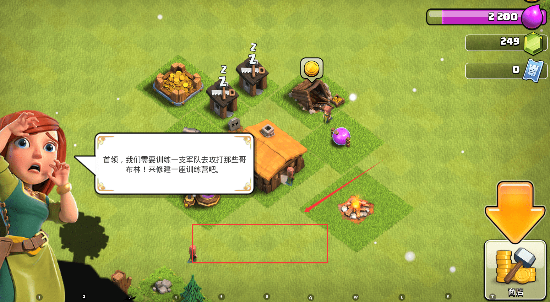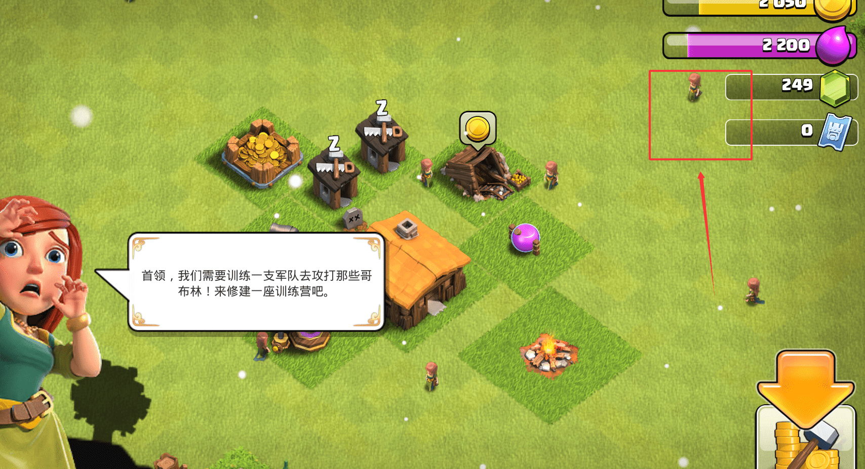 2、屏幕上可能会出现一个锤子或建造图标。点击那个图标,在弹出的建筑菜单中,选择“训练营”或类似的兵营类建筑选项。