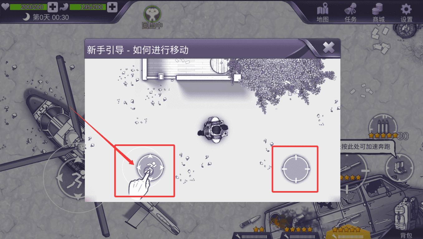 游戏采用俯视视角,副本无迷雾,一切地形与怪物尽收眼底,是迎难而上,还是避其锋芒都由您来决定,双轮盘操作,可一边移动一边射击,武器蓄力时,亦能利用走位躲掉怪物和丧尸的攻击;