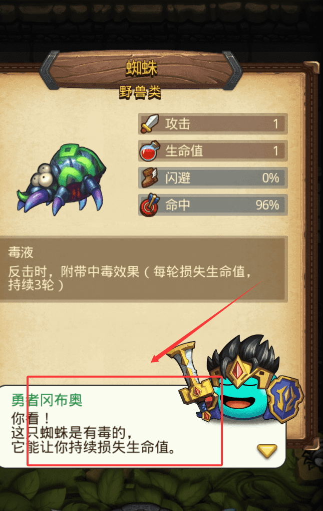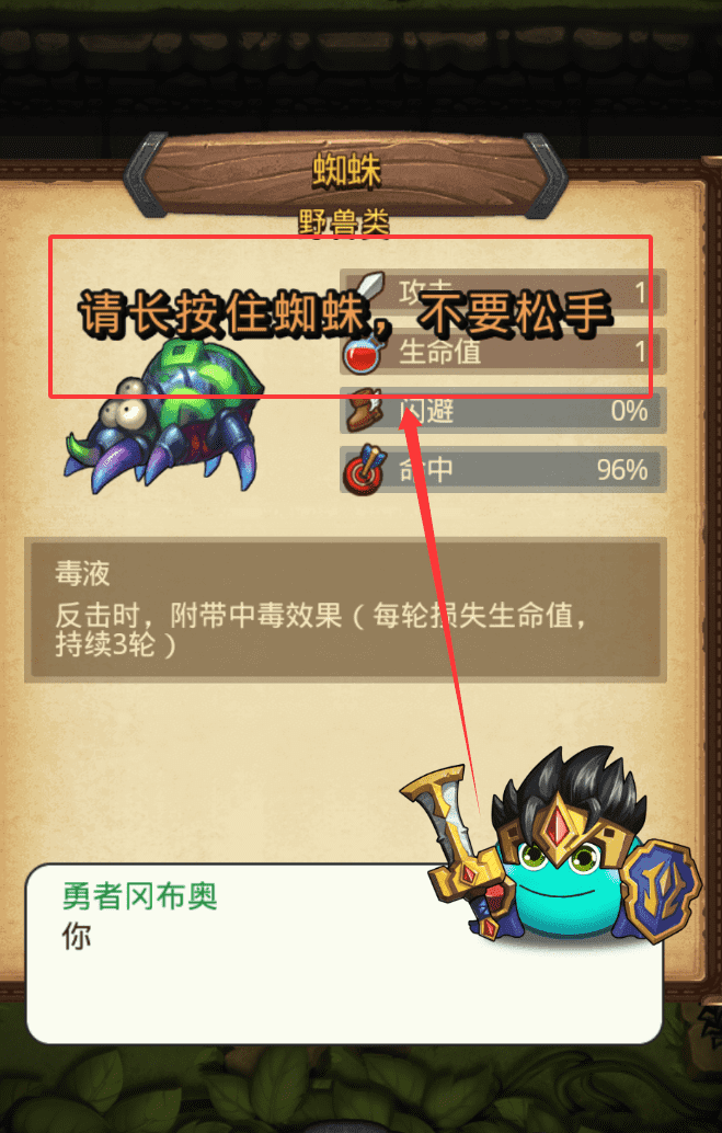1、首先在遇到蜘蛛敌人时别急着攻击呀,可以先长按它查看详细属性。