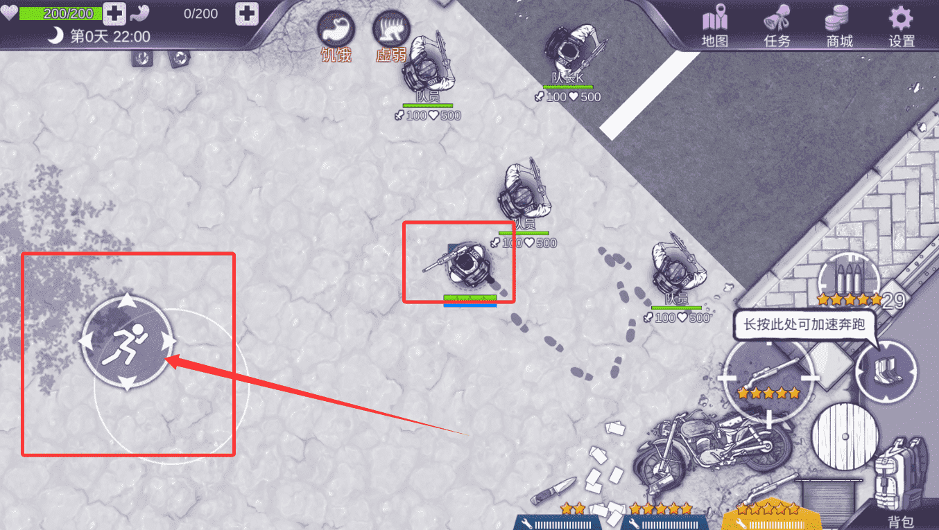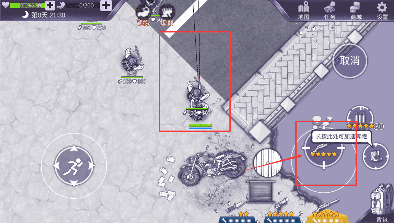 2、进入游戏场景后,画面左下角的虚拟摇杆是控制角色移动的核心,滑动摇杆即可指引人物行进方向,将其推至边缘并长按,角色会从行走转为加速奔跑状态。