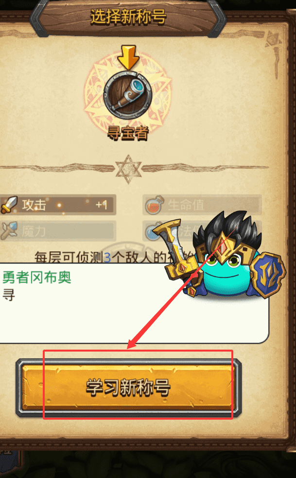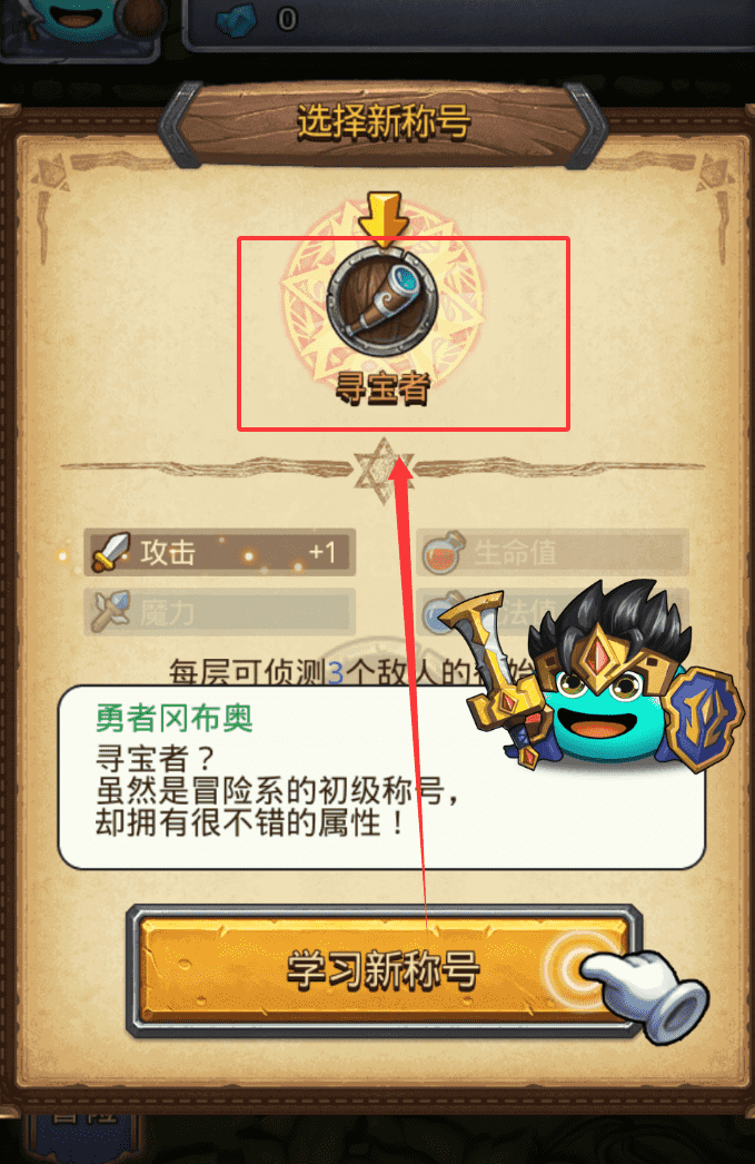 3、仔细看看称号描述再决定。例如,“寻宝者”作为冒险系初级称号,除了增加属性,还附带“每层侦测3个敌人”的实用效果。