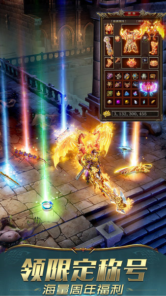 4、后期重点提升传世装备与雷霆套装品质,主号专注洗练暴击率与暴击伤害属性,利用巅峰战与跨服争霸检验阵容强度,通过翅膀升阶与元素光遁系统实现战力质的飞跃。