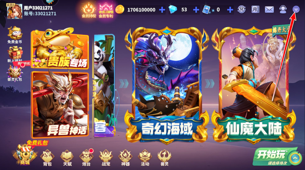 1.进入捕鱼炸翻天游戏,点击右上角向下的箭头