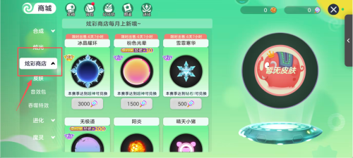 2、切换至炫光分类,查看 “炫光商店” 中的各类特效道具,消耗对应货币即可兑换所需道具。