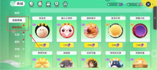 4、打开商城选择界面,点击界面左侧的皮肤按钮,选定所需道具,用于后续的养成或场景互动操作。