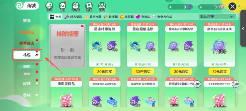 3、选中商城界面里的 “礼包” 选项,可查看对应形象的等级或属性,转移至同类型的其他形象上,完成资源调配。