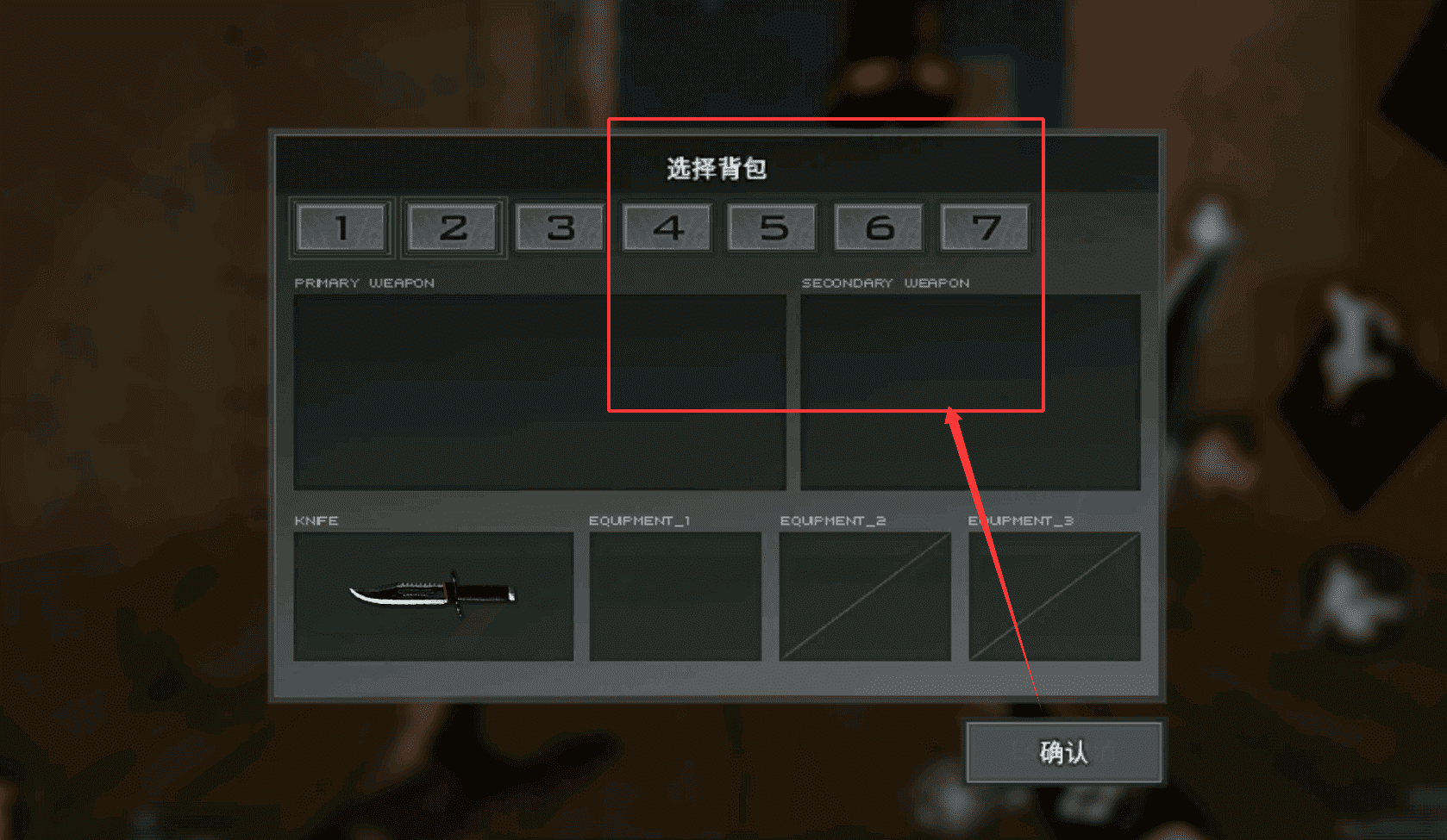 4、找到并点击界面最下方的“确认”按钮,这样就成功完成了背包的选择与装备配置了,可以继续你的冒险了。