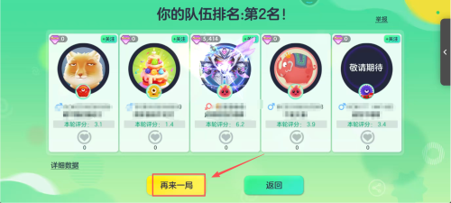 1、赛后模式选择 、队伍获得排名后,界面底部出现选项,点击标注的 “再来一局” 按钮开启新的对局。