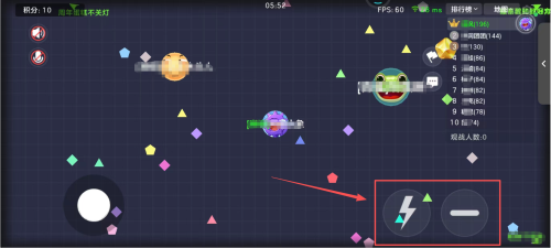4、技能按钮使用 、在界面右下角找到标注的技能按钮区域,点击对应图标可触发球体的技能效果。