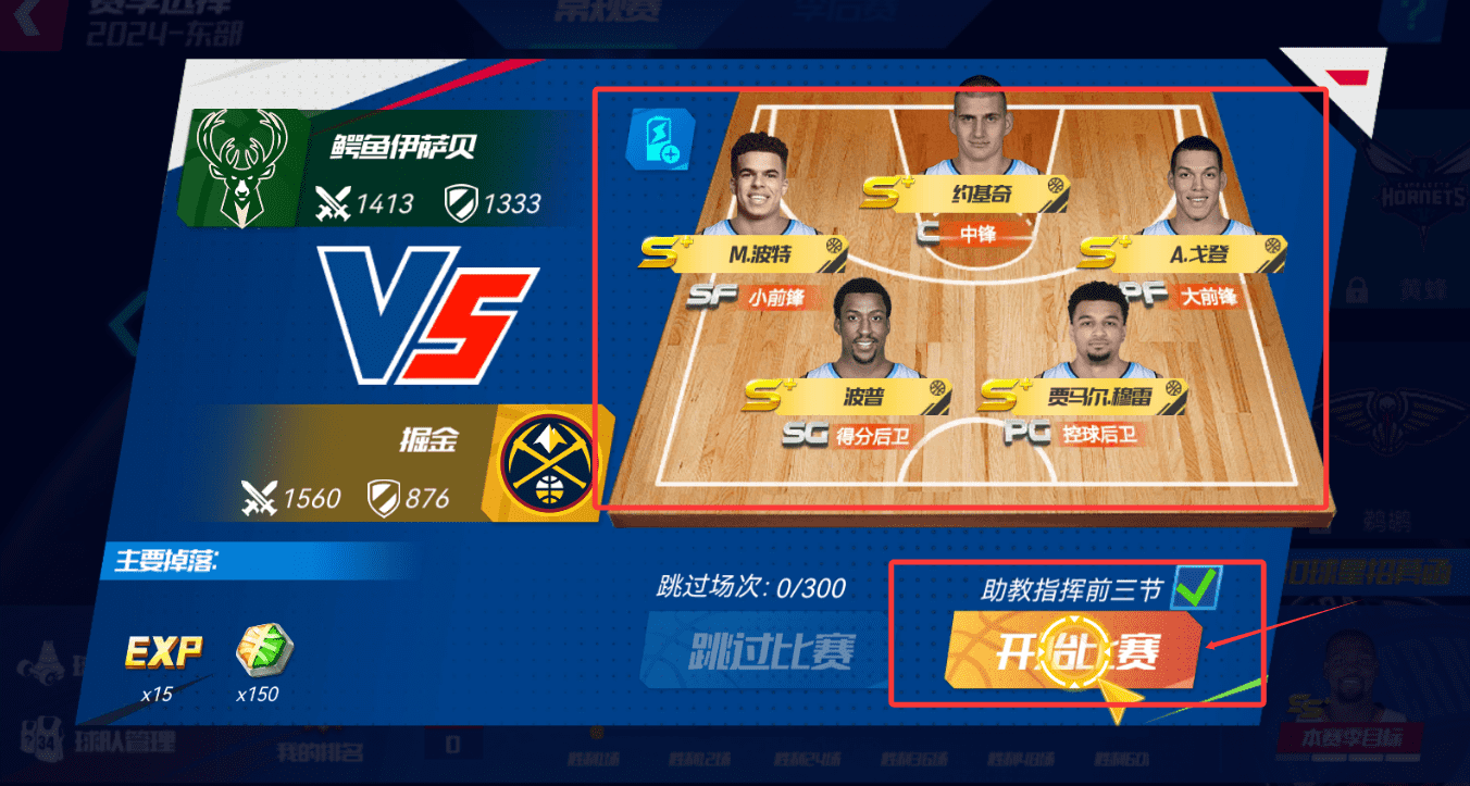 4、在进入具体比赛前,界面会呈现对阵双方的阵容与实力对比,并可设置“助教指挥”或使用“跳过场次”功能来优化时间管理;比赛中也需根据实时数据灵活调整战术与人员。