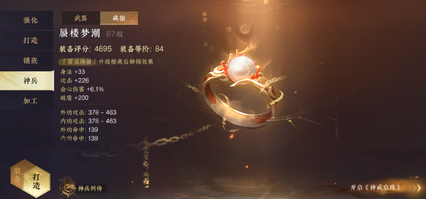 橙戒・蜃楼梦潮现在已经上线打造系统内了,只需要收集一颗海蜃奇珠和二十片天外雷麟,再花费20W交子就可以打造出来了,本期攻略老咸鱼就给大家来简单介绍下橙戒打造材料的获取途径,以及常规进度和最快进度分别什么时候可以解锁。