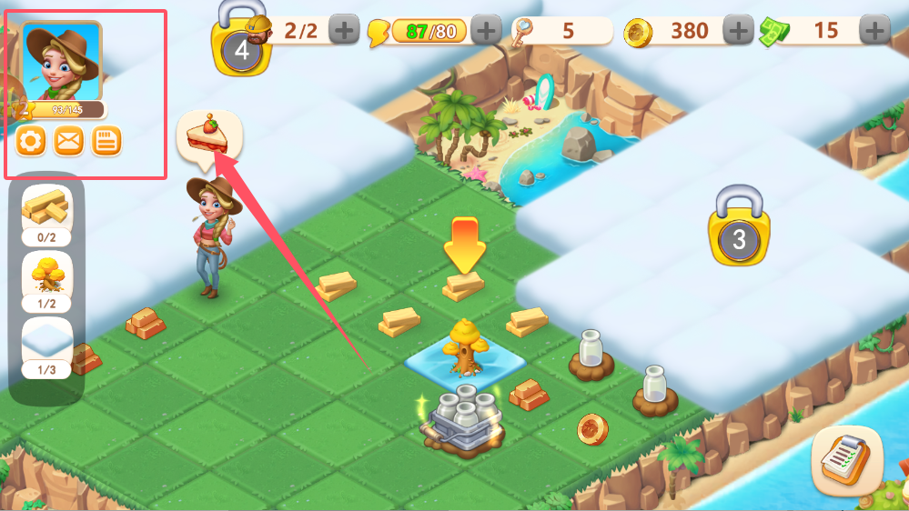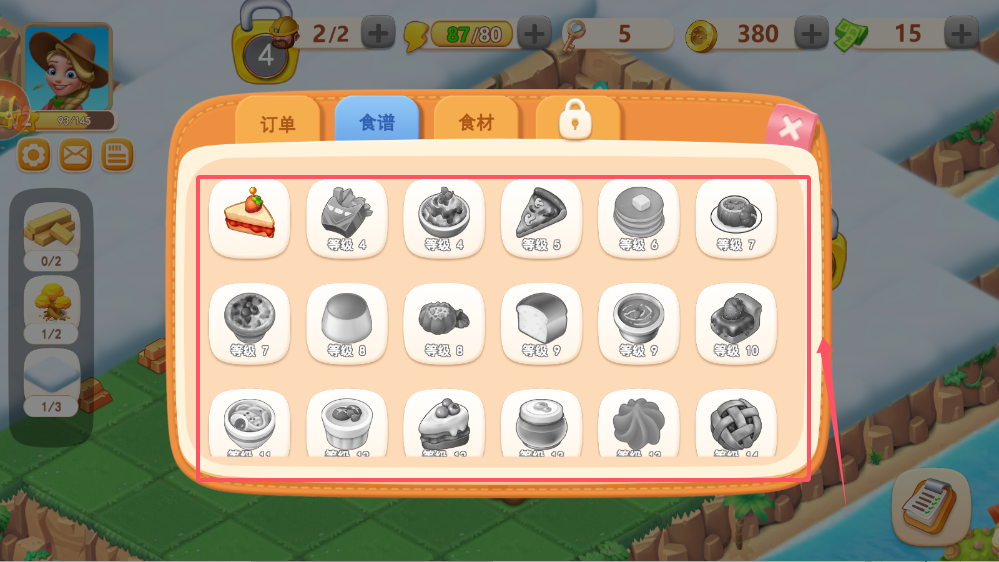 2、订单系统连接着生产与销售,牛仔角色给出的蛋糕订单需要5个罐子来完成。接受订单前要确保食材充足,制作过程中要关注剩余时间。