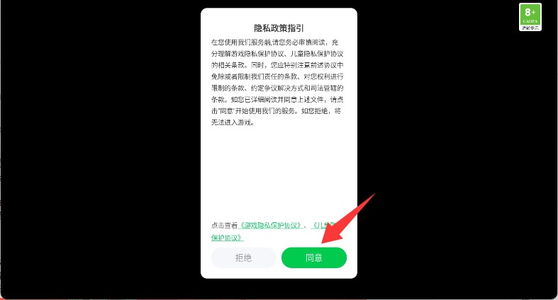 1、启动游戏后,仔细阅读并点击“同意”勾选隐私政策,完成初始授权流程。