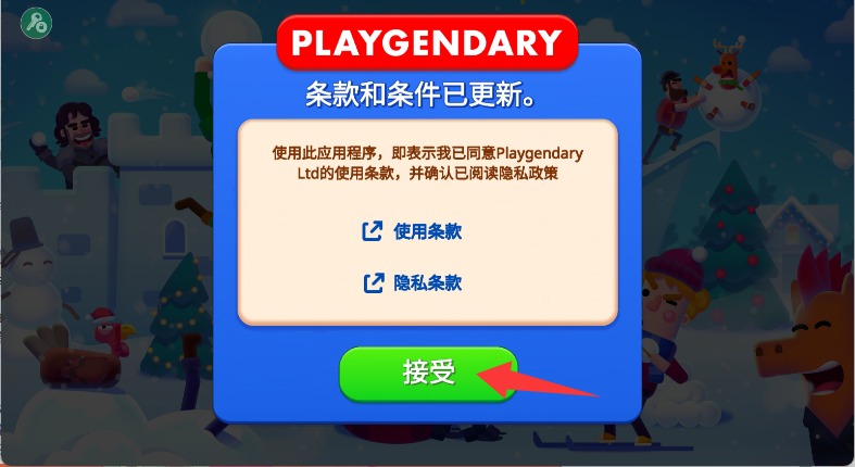 2、继续阅读并点击“同意”勾选用户服务协议,确认相关使用条款与游戏规则。