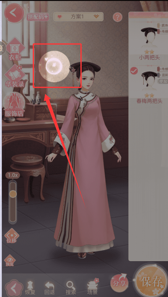1、选中喜欢的拖进去就好,搭配时可以点服饰店换更多选择,还能用位移调整位置,回退或恢复不怕配错,最后记得保存你的方案呀。