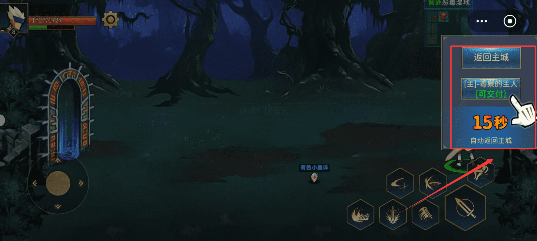 1、你可以通过交付快速完成任务,系统会提示15秒后自动返回主城,这节省了跑图时间,挺方便的呀。