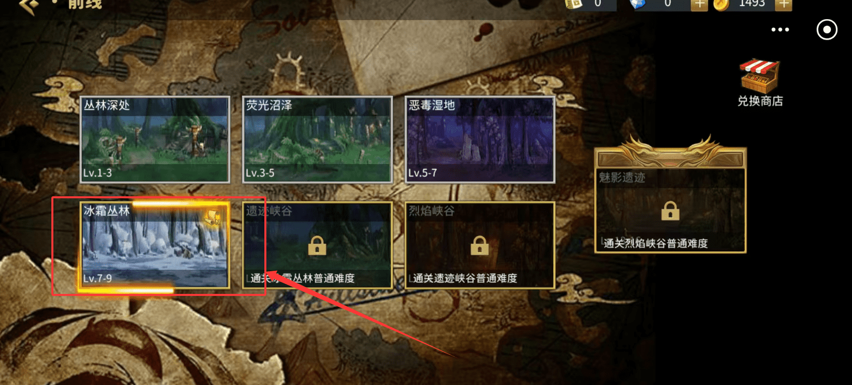 3、会按等级划分区域如“茂光沼泽”,并显示解锁条件,例如通关“热能峡谷普通难度”才能进入下一区域,规划路线时可以参考。