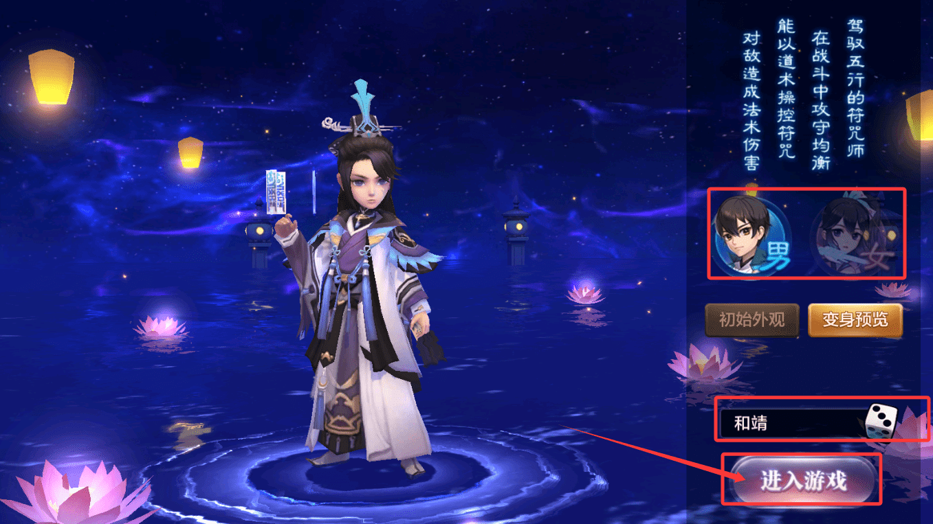 2、创建角色时可选择职业,如符咒师,其擅长以符咒施展法术,驾驭五行之力,在战斗中兼顾攻防。