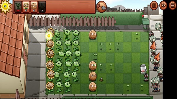 一款策略塔防游戏。玩家在游戏中需要收集各种各样的植物来抵御僵尸的攻击,玩家使用的植物有很多种,那当然僵尸也会有很多种,不用类型的僵尸血量和攻击力都是不同的。玩家要了解这些植物的能力,可以在关卡中选择一些植物参加战斗,组建自己的植物大军将僵尸全部消灭。