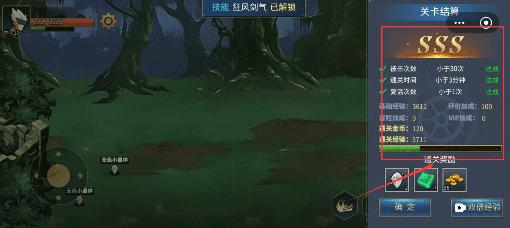 2、记得领取“通关奖励”,并可酌情使用“双倍经验”道具来加速升级。同时关注通关获得的金币与经验值,为后续成长做准备。