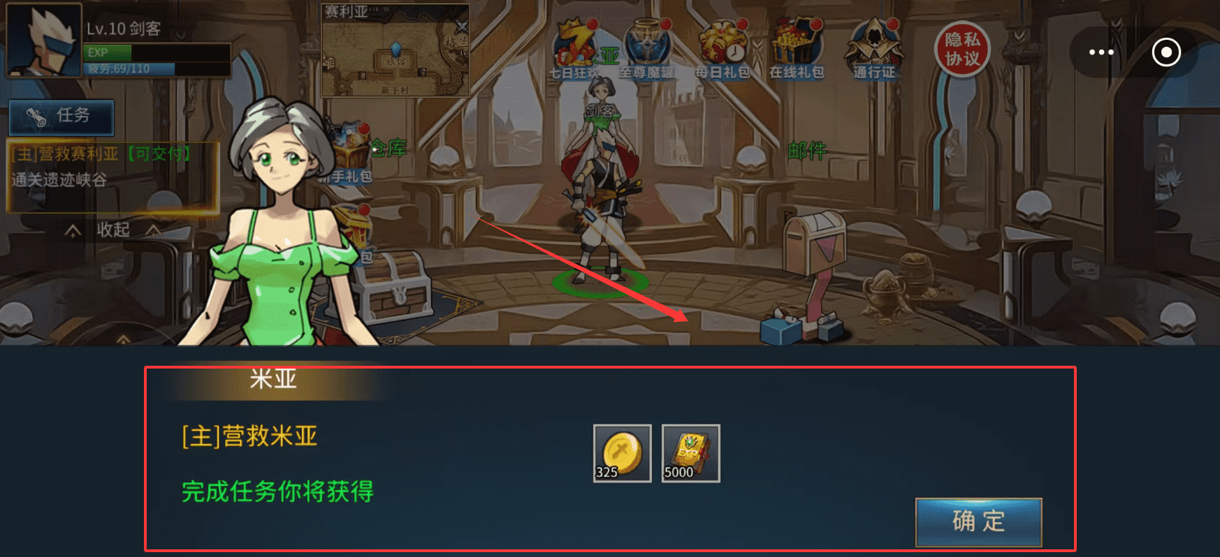 3、注意对话内容并点击“确定”领取任务奖励,这些奖励通常包含经验、金币或实用道具,能有效助力角色前期发展。