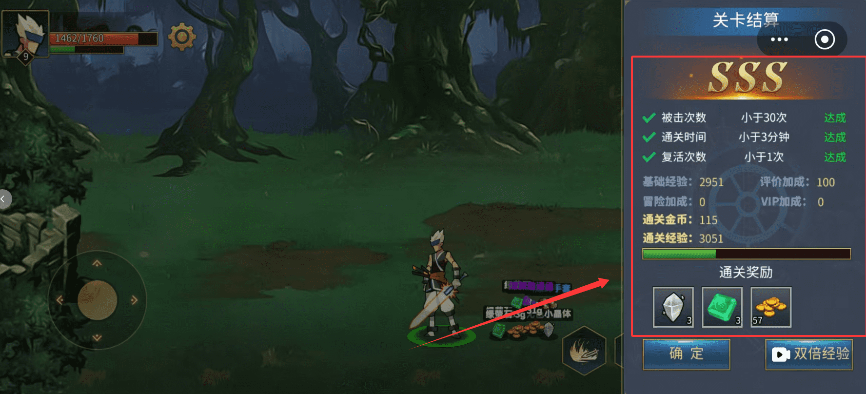 1、拿到高评级后,在结算界面确认基础经验和金币,如果还有双倍经验道具,别忘了勾选使用哦。