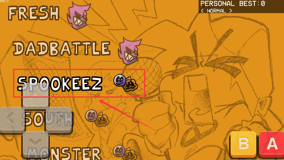 1、使用方向键或对应的操作键上下移动光标来选择你想挑战的曲目,比如从“SPOOKEEZ”开始,然后按下确认键进入难度选择。