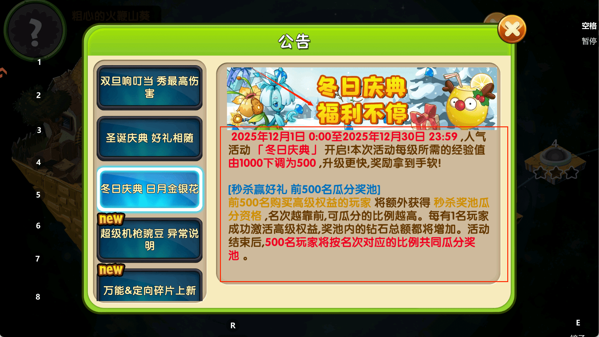 1、这个“双旦响叮当”玩法在12月25日才开放,入口在游戏主界面的左下角,这是个纯粹比拼输出伤害的玩法,目标就是尽可能打出更高的伤害数字。
