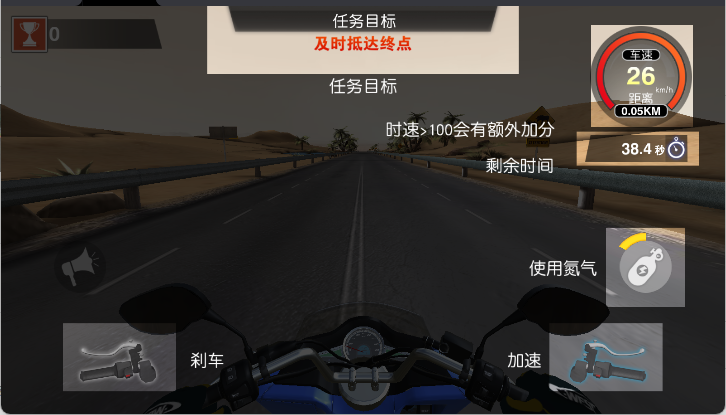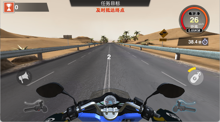 3、进入关卡后,通过重力感应或虚拟按键操控摩托车行驶,按导航指示前往目标地点。