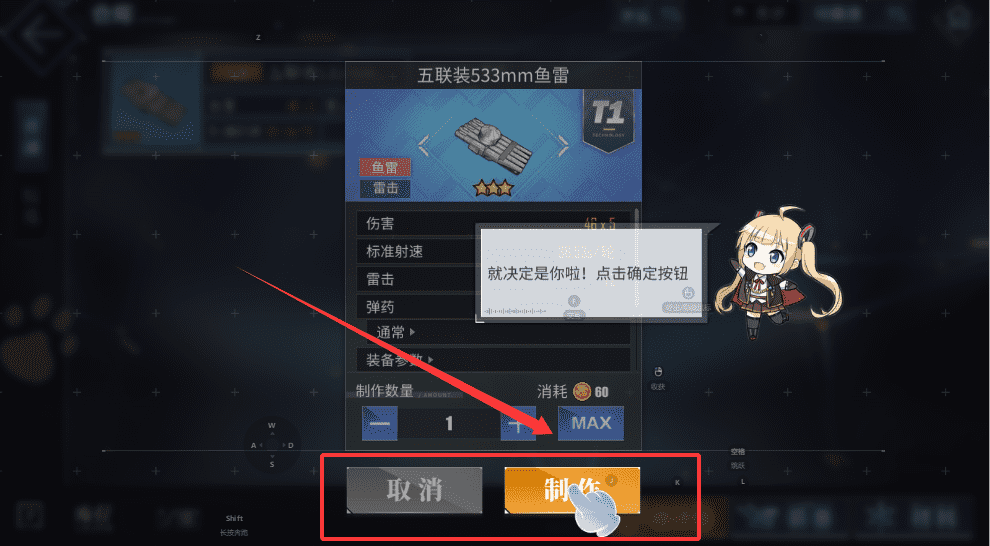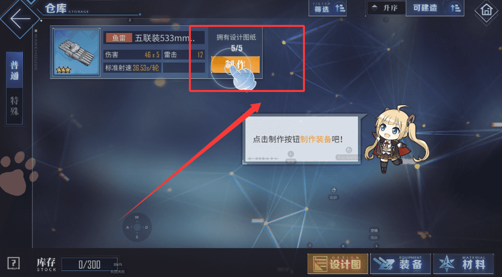1、比如“鱼雷”,接着在列表里找到目标装备如“五联装533mm鱼雷”,点击查看详情并确认拥有足够的材料和设计图。