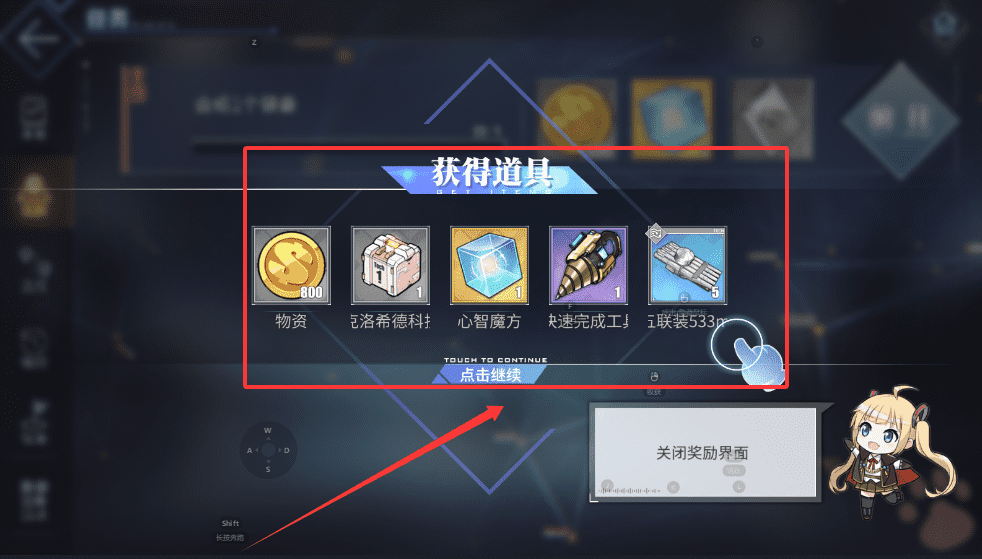2、确认后点击“继续”或“关闭奖励界面”就可以回到主界面了,过程非常清晰顺畅。