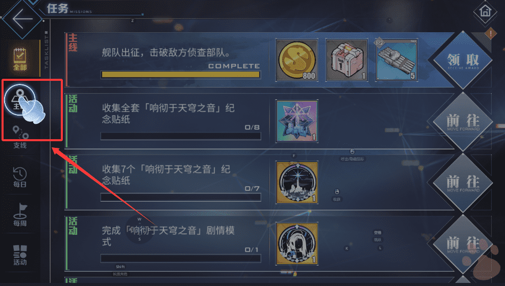 1、在这里你可以看到活动相关的各类任务,比如收集纪念贴纸或完成剧情模式,记得优先查看带有“活动”标签的任务,完成后记得点击领取奖励哦。