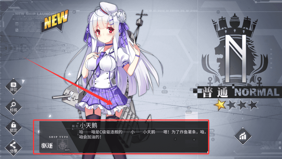 2、像“小天鹅”这类驱逐舰,可以点击“NEW”查看详情,并根据指引选择“冒险”或“普通”模式继续推进进度。