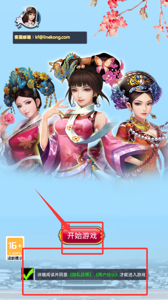 1、初次进入游戏需在启动界面查阅适龄提示并确认同意相关协议,随后点击“开始游戏”加载资源。