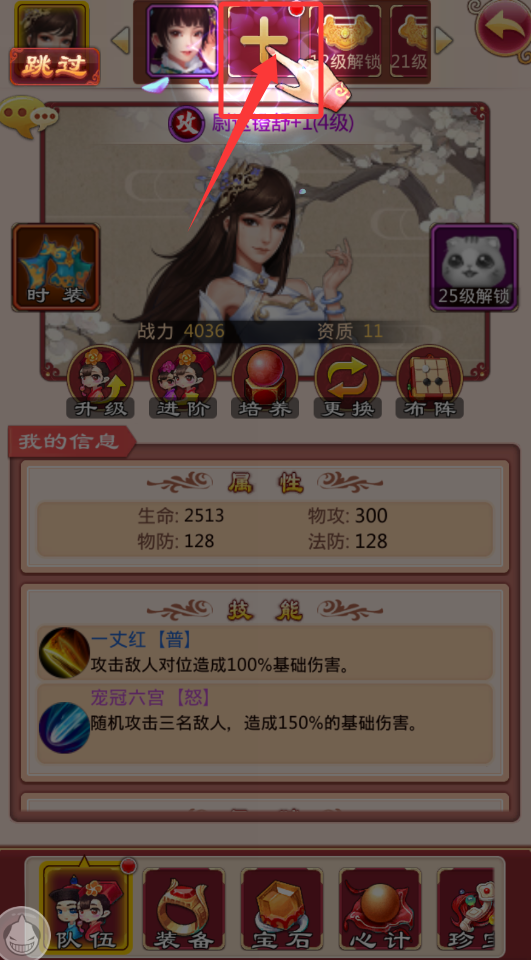 4、每位角色均具备独特的主动与被动技能,在“我的信息”面板可查阅其生命、攻防数据及技能效果,利用“升级”、“进阶”及“宝石”镶嵌等培养手段能显著提升战力。