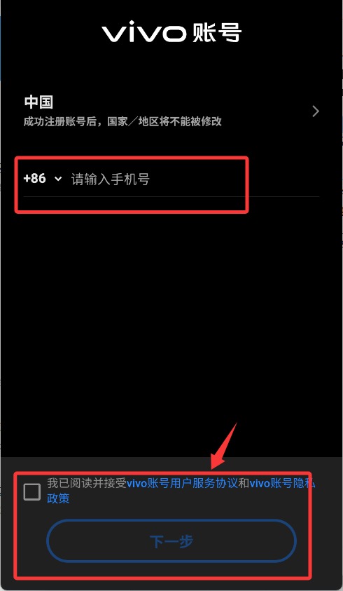 3、按照提示输入您的手机号码,点击“下一步”进入验证环节完成注册流程。