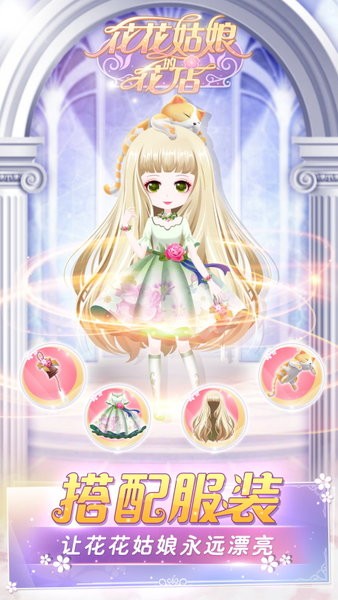 让花花姑娘陪伴你,开一家梦幻花店~为每一位客人,制作浪漫的花束,一起收获满满的幸福!你也可以帮可爱的花花姑娘搭配漂亮的服装,让她每天都能以全新的面貌迎接客人。趣味的关卡,发挥个性创意的设计比拼,还有花朵的探索,丰富的玩法设计,让你的花店永远都能充满乐趣!